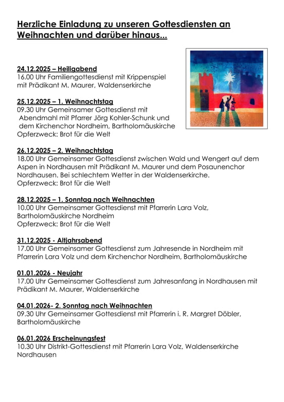 Wir laden Sie herzlich zu den Gottesdiensten in unsere Waldenserkirche ein.