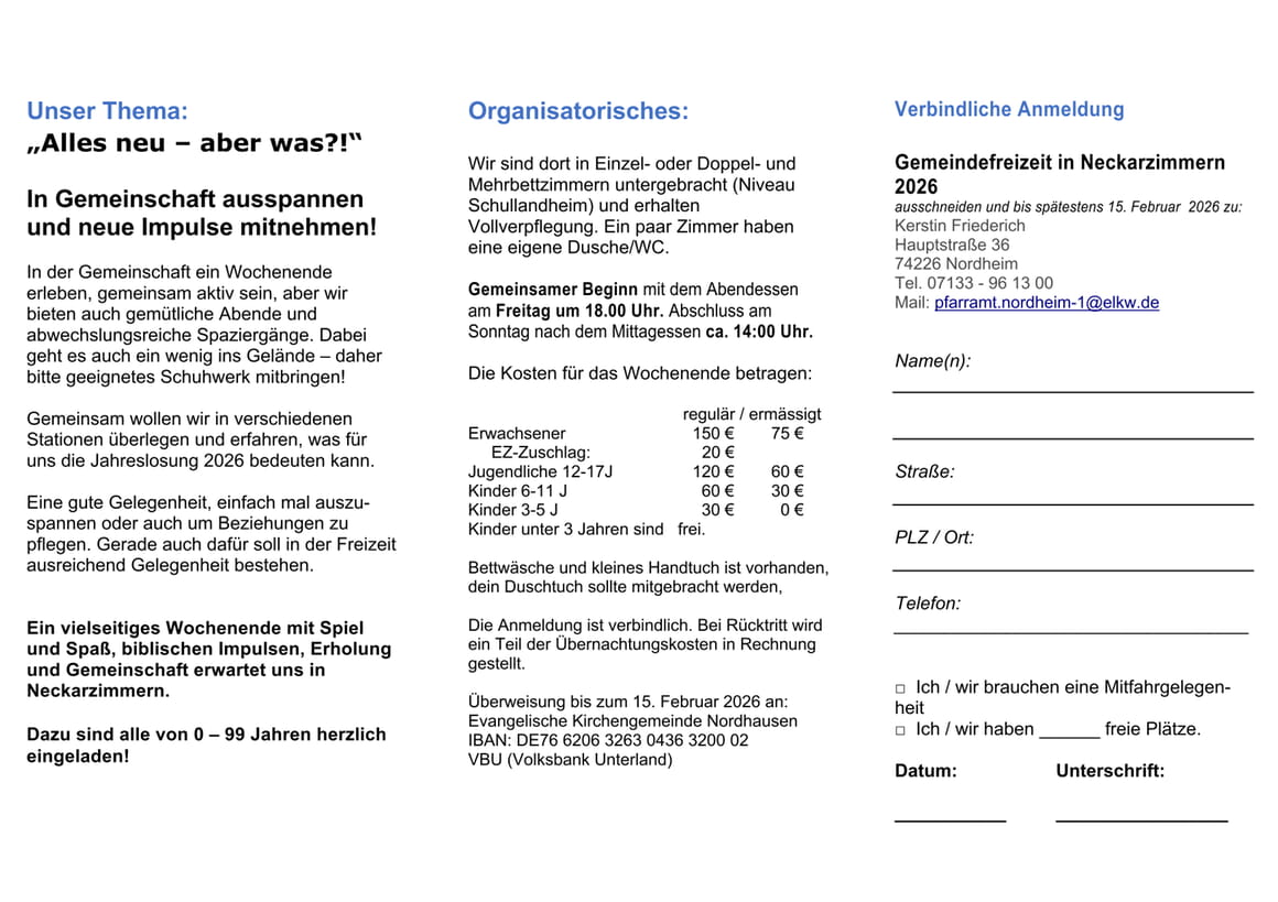 Gemeindefreizeit vom 20.-22. Februar 2026